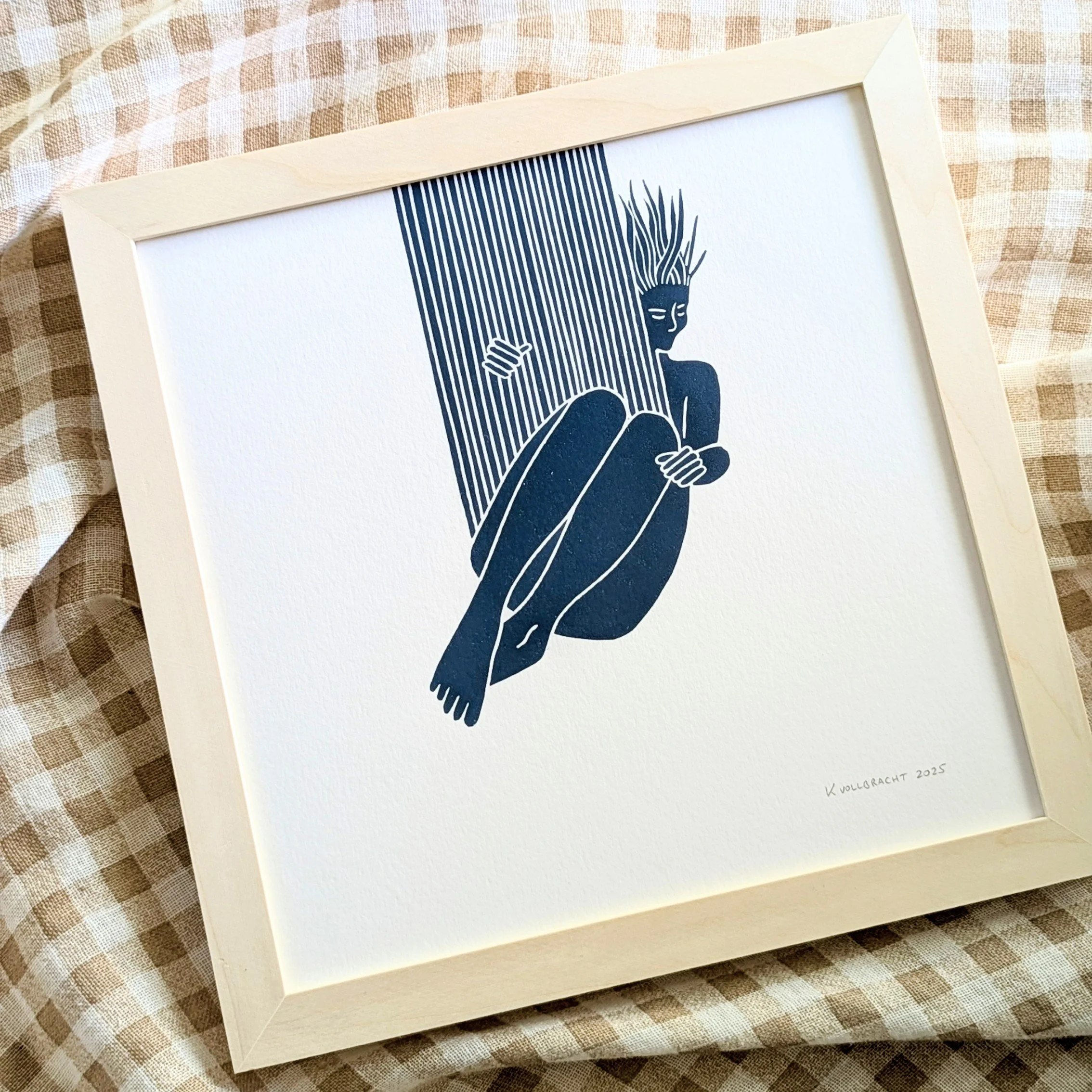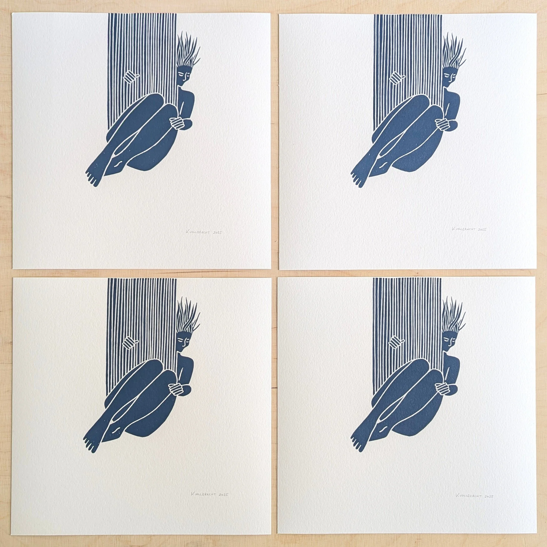 Jeder Druck ist ein Unikat. Der Druck, den ich dir schicke, kann deshalb ein kleines bisschen anders aussehen als auf den Bildern, die du hier siehst. Das macht die Linoldruck-Technik aus und macht jedes Bild zu eine Unikat.